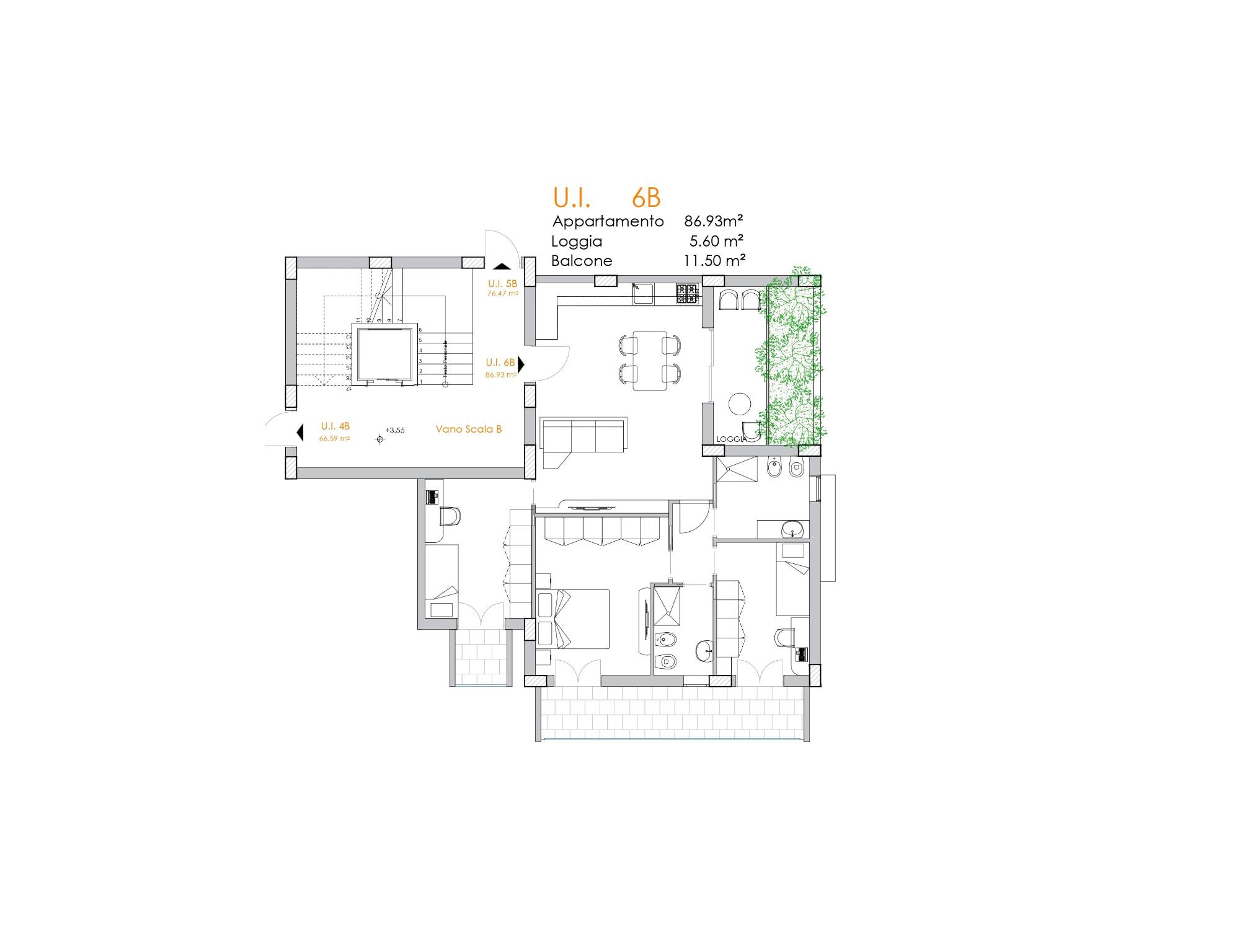 Quadrilocale al primo piano caratterizzato da terrazzi a livello coperti e balconi vivibili, progettato per offrire stile e riservatezza, si compone da living-cucina, tre camere da letto e doppio accessorio.